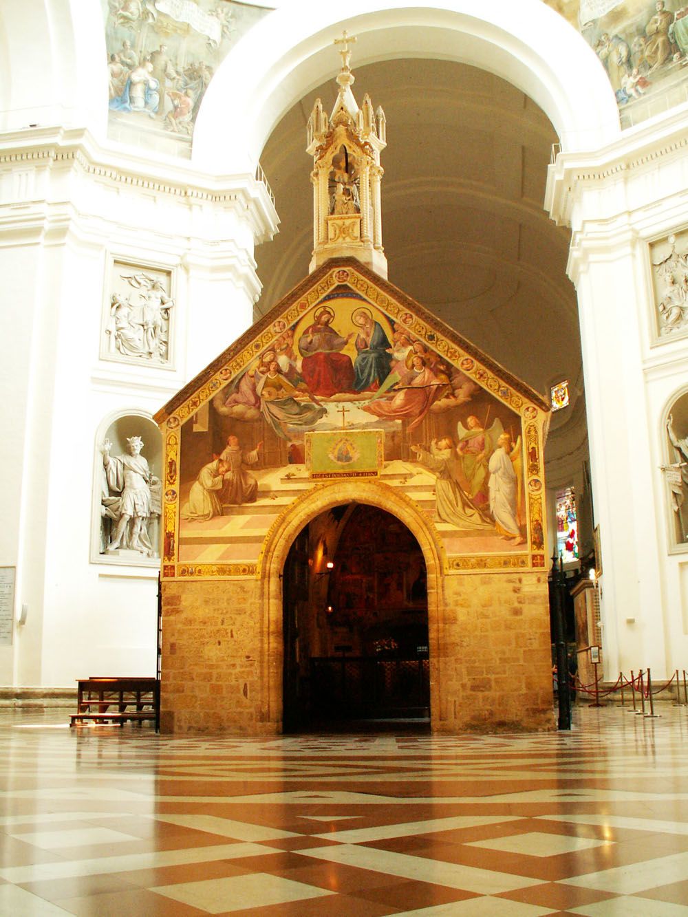 Isten szolgája a szerény, szívben alázatos és foglalatosságokban az alacsonyabbakat kedvelő Ferenc, míg e világban élt, saját maga és övéi számára kis részt (Portiunculát) választott csupán ebből a világból, és ezt is csak azért tette, hogy Krisztusnak tudjon szolgálni. Talán isteni sugallatra nevezték már korábban is ezt a helyet „Portiunculának”, vagyis kicsiny területnek, hiszen azoknak lett menedéke, akik e világból semmit sem akartak birtokolni. Ezen a kis földterületen állt egy kis templom, melyet a Boldogságos Szűz tiszteletére építettek, aki nagy alázatosságával kiérdemelte, hogy Szent Fia után ő is az összes szentek koronája lehessen. Itt vette kezdetét a Kisebb Testvérek Rendje, mely biztos alapokra épülve, hatalmas, nemes szellemi épületté fejlődött. Szent Ferenc atyánk ezt a helyet mindennél jobban szerette, és megparancsolta a testvéreknek, hogy különös áhítattal viseltessenek iránta és azt akarta, hogy ez a hely az alázatosság, a legteljesebb szegénység tekintetében mintakép és tükör legyen a többiek előtt, ezért még a birtoklási jogot is másnak adta, magának és övéinek csak a használati jogot tartotta meg. Azok a testvérek, akik itt laktak, éjjel és nappal Isten dicséretében éltek és az angyali élet csodálatos illatát árasztották. Szent Ferenc jól tudta ugyan, hogy a mennyország a földkerekség bármely pontján fellelhető, s hogy az isteni kegyelem mindenütt egyformán kijár a választottaknak, mégis úgy tapasztalta, hogy a Sancta Maria in Portiuncula temploma kegyelemmel teljesebb és a magasabbrendű szellemektől sűrűbben látogatott hely. Ezért gyakran mondogatta a testvéreknek: „Vigyázzatok rá, fiaim, hogy sose hagyjátok el ezt a helyet. Ha az egyik oldalon kiűznek benneteket, jöjjetek vissza a másikon, mert valóban szent ez a hely, Isten lakóhelye. Mikor még kevesen voltunk, itt sokasította meg számunkat a Magasságbeli, bölcsességének fényével itt világosította meg szegény szolgáinak szívét, szeretetének tüzével itt gyújtotta lángra akaratunkat. Aki itt buzgó szívvel imádkozik, az minden bizonnyal megkapja, amit kér, de aki vétkezik, az súlyosabban is bűnhődik. Azért, fiacskáim, mindig nagy tiszteletben tartsátok e helyet, és a túláradó öröm hangos szavával szívetek mélyéből magasztaljátok az Istent.