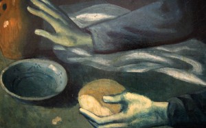 Azután így folytatta: „Tegyük fel, hogy valamelyiteknek van egy barátja, aki éjfélkor bekopog hozzá és ezt mondja: »Barátom, adj kölcsön nekem három kenyeret! Útról érkezett egy vendégem, s nincs mivel megkínálnom.« De az kiszól: »Ne zavarj engem! Az ajtó már be van zárva, én is, gyermekeim is ágyban vagyunk. Nem tudok fölkelni, hogy adjak neked.«