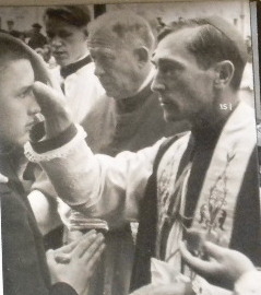 Csak nem látom, még a teremben őrködő munkatársait is megkérdeztem. Végül együtt sem találtuk meg, míg egy kicsit távolabb állva látom ám, hogy a 3. tabló aljában olvasható a 4-5. szám is: a szemináriumi évekről, papszentelésről, káplánságról. Így már sorrendben illesztkedett a 6. tablókép a püspökszentelésről.