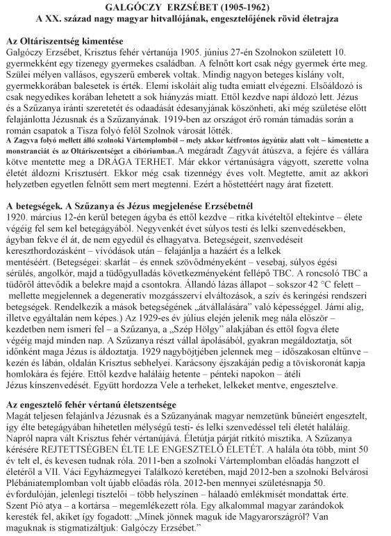 GALGÓCZY Erzsébet életrajza-1 Közzétéve: 2019-04-09 - 563 × 771 - Galgóczy Erzsébet – a XX. század magyar stigmatizáltja