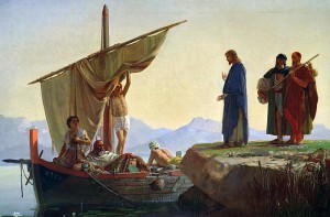 Amikor a Galileai-tó partján járt, látta, hogy Simon és testvére, András, akik halászok voltak, éppen hálót vetnek a tengerbe. Jézus megszólította őket: „Jöjjetek utánam, és én emberhalászokká teszlek titeket.” Azok rögtön otthagyták hálóikat, és követték őt.