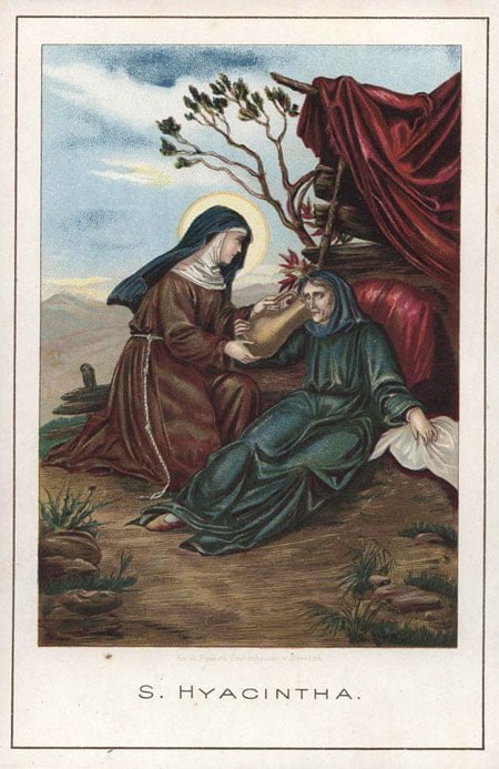 Istenünk, te Szent Jácinta szüzet szereteted tüzével lángra lobbantottad és az állandó önmegtagadás példájává tetted; közbenjárására add, hogy bűneinket megsiratva folytonosan a te szeretetedben éljünk.