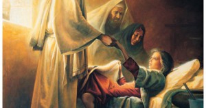 A hír hallatára Jézus így bátorította a zsinagóga elöljáróját: „Ne félj, csak higgy!” Péteren, Jakabon és Jánoson, Jakab testvérén kívül senkinek sem engedte meg, hogy vele menjen.