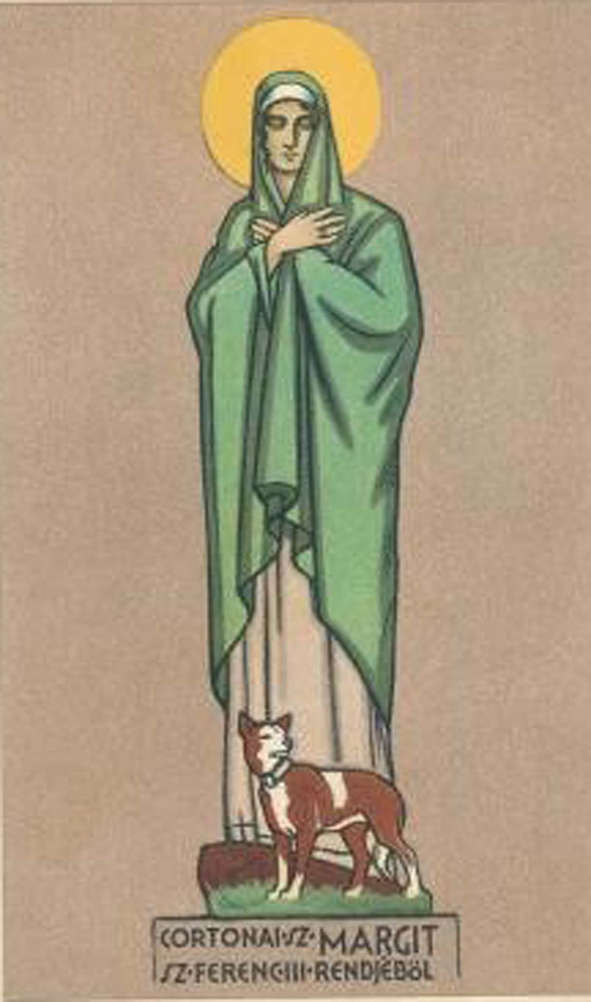 Cortonai Szent Margit a toscanai Lavianóban született 1247-ben. Hét éves korában elvesztette édesanyját. Mostohája nem szívlelte, ezért Margit 17 évesen egy montepulcianói nemes szolgálatába szegődött, akivel szerelmi viszonyt tartott fenn kilenc éven át. A viszonyból egy fiúgyermek is született. Egyszer téli időben a férfi, kutyája kíséretében elment hazulról. Két nap múlva csak a kutya tért vissza, és elvezette Margitot gazdája holttestéhez.
