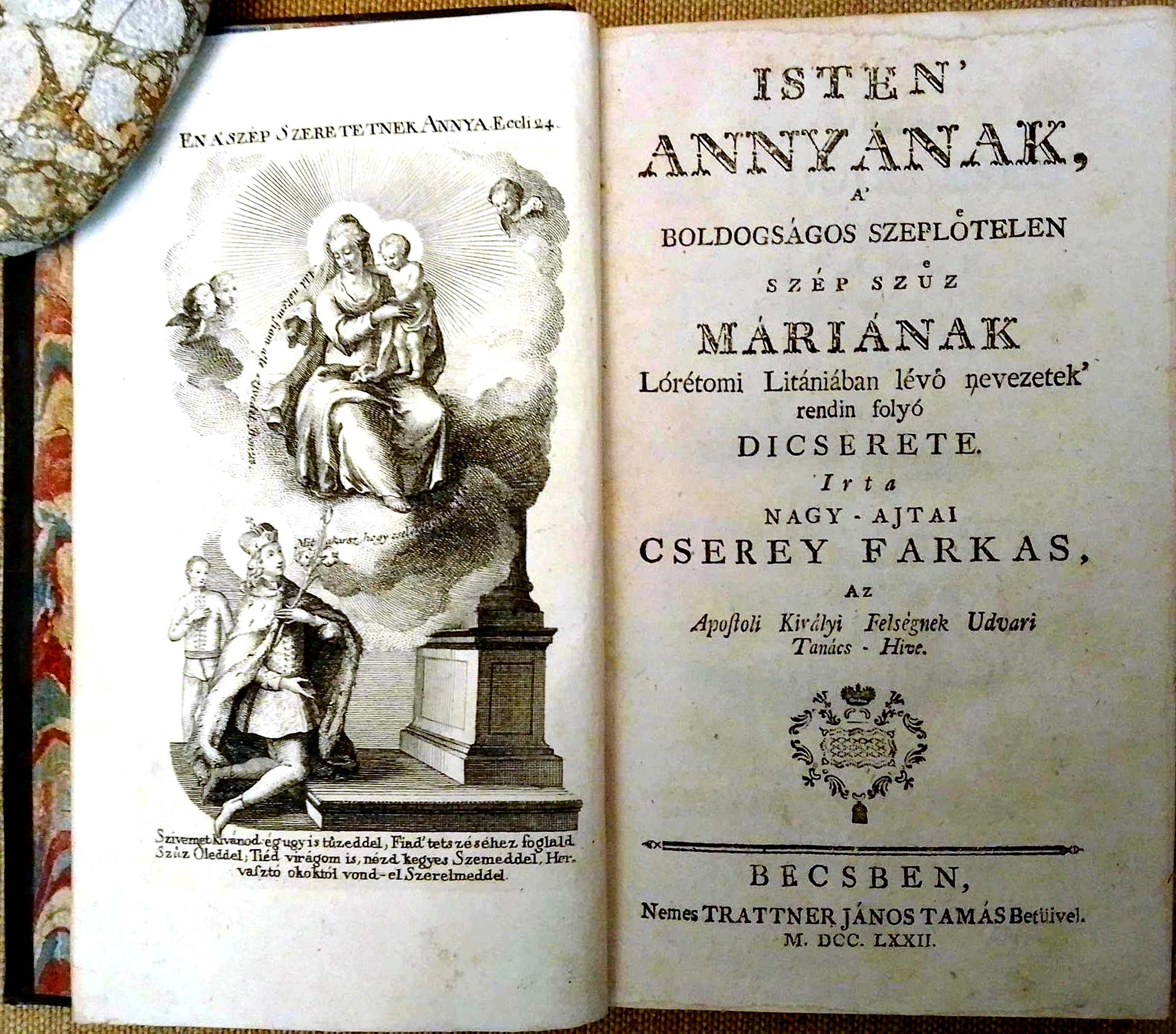 A liturgikus hagyomány szerint május és október Szűz Mária hónapja. Májusban az esti órákban, a szentmisék előtt vagy után sok templomban végeznek ájtatosságokat Mária tiszteletére. A Mária-antifónák és énekek mellett különös szerepe van az ún. lorettói litániának. A lorettói litánia első magyar nyelvű kiadása 1772-ben, Bécsben jelent meg. Isten’ annyának, a’ Boldogságos Szeplőtelen Szép Szűz Máriának Lórétomi Litániában lévő nevezetek’ rendin folyó dicsérete címmel. Szerzője a művelt erdélyi udvari tanácsos, Cserey Farkas. A kötetet Jacob Adam rézmetszetei díszítik.