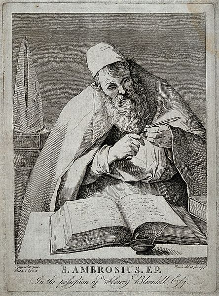 Trierben született 340 körül. Milánói működése idején, 374-ben a nép közfelkiáltással püspökké választotta, és december 7-én felszentelték. Vagyonát szétosztotta, és napjait munkával, imádsággal és tanulással töltötte. Szent Ágoston egyszer azt mondta róla, hogy „a szegények serege vette körül, annyira, hogy … Bővebben