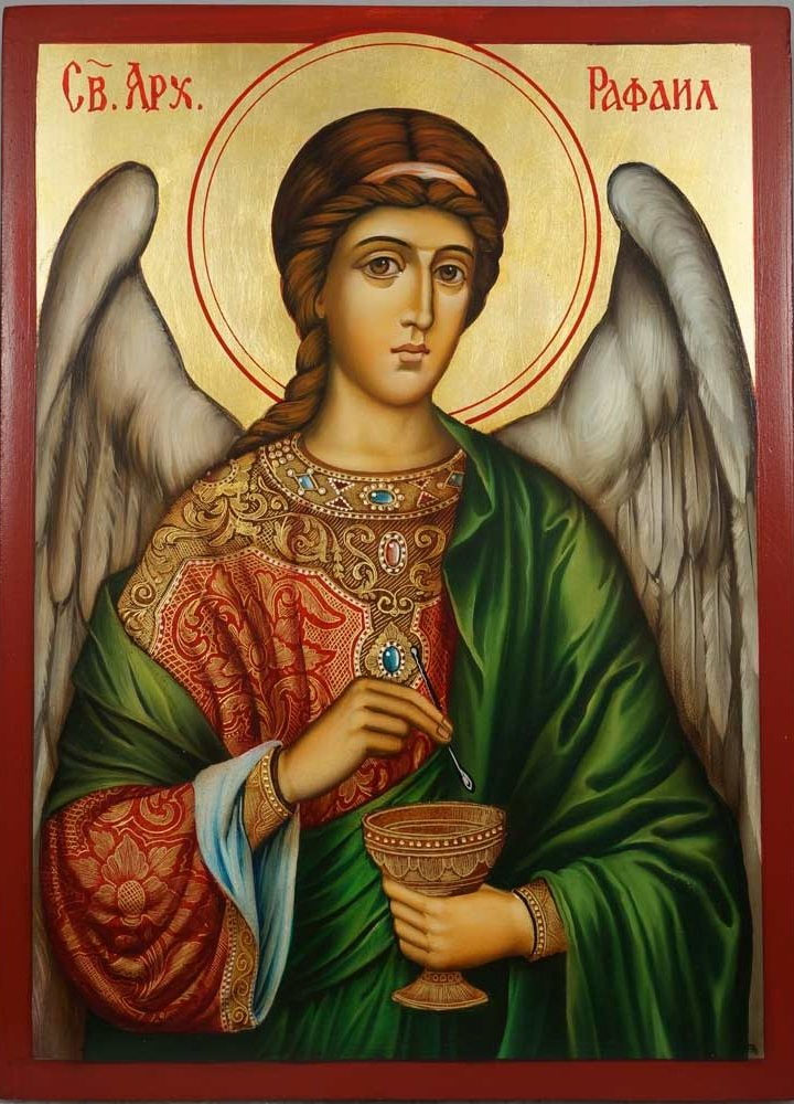 Végül, Rafael nevének jelentése: „Isten orvossága”. Ennek az a magyarázata, hogy amikor gyógyító beavatkozással megérintette Tóbiás szemét, megszüntette a vak emberre borult sötétséget. Természetes tehát, hogy akit Isten gyógyítás céljából küld, az méltán viseli az „Isten orvossága” nevet.