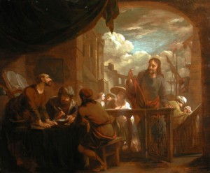 Amikor Jézus egyszer Kafarnaumban járt, meglátott egy Lévi nevű vámost, aki a vámnál ült. Megszólította őt: „Kövess engem!” A vámos erre fölkelt, és mindenét otthagyva, követte Jézust. Lévi azután Jézus tiszteletére nagy lakomát rendezett házában. Jézussal együtt sok vámos és más ember telepedett az asztalhoz. A farizeusok és az írástudók méltatlankodva fordultak a tanítványokhoz: „Hogyan lehet az, hogy ti a vámosokkal meg a bűnösökkel együtt esztek és isztok?”