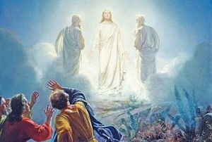 Abban az időben Jézus maga mellé vette Pétert, Jakabot és testvérét, Jánost, s külön velük fölment egy magas hegyre. Ott elváltozott előttük: arca ragyogni kezdett, mint a nap, a ruhája pedig vakító fehér lett, mint a fény. És íme megjelent nekik Mózes és Illés: Jézussal beszélgettek. Ekkor Péter így szólt Jézushoz: „Uram, jó nekünk itt lennünk! Ha akarod, készítek itt három sátrat, neked egyet, Mózesnek egyet és Illésnek egyet!” Még beszélt, amikor íme, fényes felhő borította el őket, és a felhőből egy hang hallatszott: „Ez az én szeretett Fiam, akiben kedvem telik. Őt hallgassátok!” Ennek hallatára a tanítványok földre borultak és nagyon megrémültek. De Jézus odament hozzájuk, megérintette őket és ezt mondta: „Keljetek fel és ne féljetek!” Amikor szemüket fölemelték, nem láttak mást, csak Jézust egymagát. A hegyről lejövet Jézus a lelkükre kötötte: „Senkinek se szóljatok a látomásról, míg az Emberfia a holtak közül fel nem támad.”