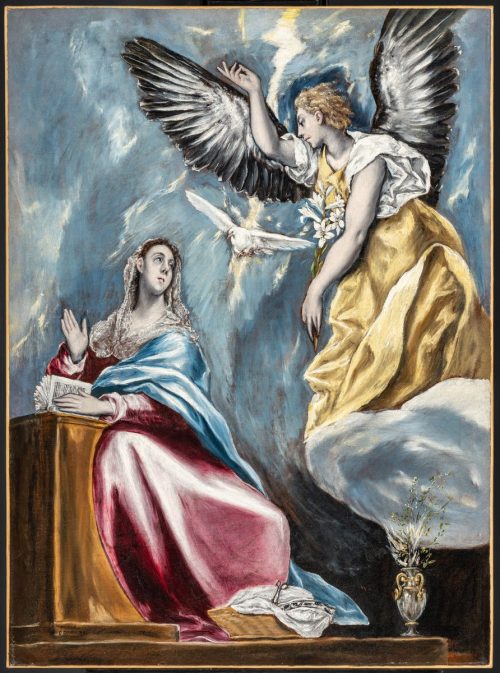 Az angyal ezt válaszolta neki: „A Szentlélek száll le rád, és a Magasságbeli ereje borít be árnyékával. Ezért szent lesz az, ki tőled születik: Isten Fiának fogják őt hívni. Lásd, rokonod, Erzsébet is gyermeket fogant öregségében, sőt, már a hatodik hónapban van, bár magtalannak tartják az emberek. Istennél semmi sem lehetetlen.”
