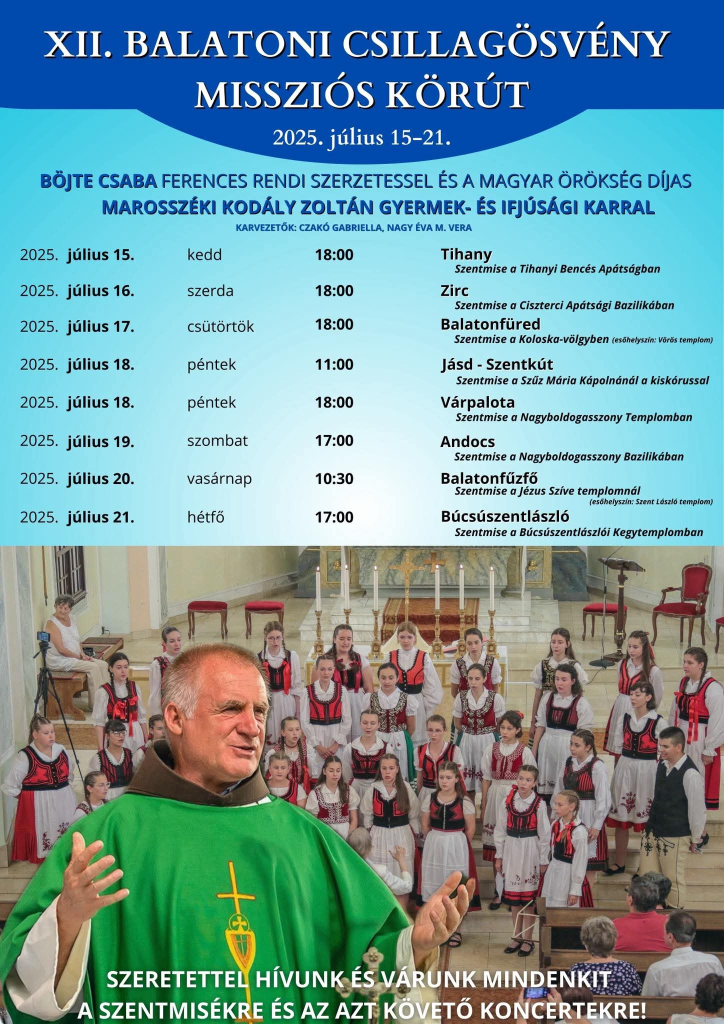 XII. BALATONI CSILLAGÖSVÉNY MISSZIÓS KÖRÚT 2025-07-14 by zalaferences Július 21-én 17 órakor a Búcsúszentlászlói Kegytemplomban Július 21-én 17 órakor a Búcsúszentlászlói Kegytemplomban