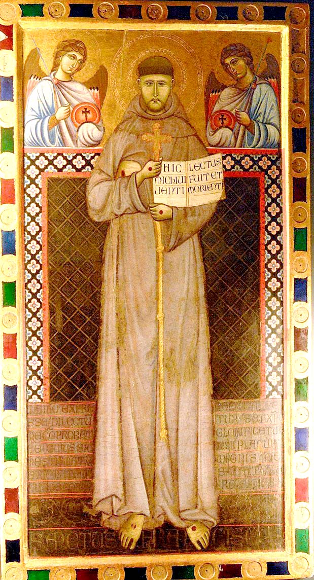 Master_of_St._Francis._Saint_Francis_and_Angels,_13th_cent._,_Museo_della_Porziuncola,_Assisi Közzétéve: 2026-01-11 - 619 × 1144 - Assisi Szent Ferenc tranzitusának 800. jubileuma