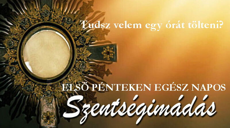 Elsőpénteken templomunkban egész napos szentségimádást tartunk. Mindenkit szeretettel várunk! A szentségimádás mindannyiunk számára lehetőség, hogy az Eucharisztiában jelenlévő Jézussal találkozzunk. Imádkozzunk a békéért, hazánkért, az egész világért.