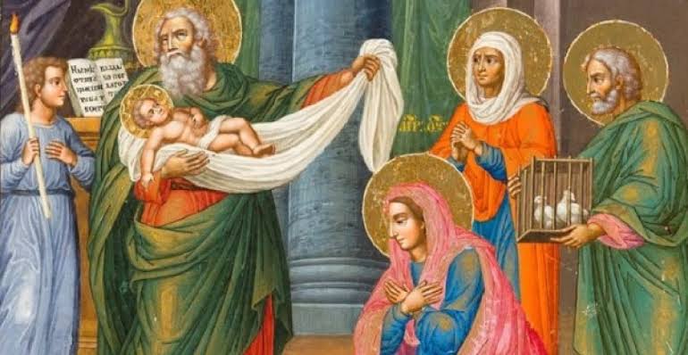 A mai ünnepen arra emlékezünk, hogy Szűz Mária, negyven nappal Jézus születése után, bemutatta gyermekét a jeruzsálemi templomban. A szokásnak megfelelően a szülők, Mária és József áldozatként két gerlicét vagy galambfiókát ajánlottak fel, és az Úrnak szentelték az elsőszülött fiút. A mózesi törvény szerint előírt áldozat fölajánlásakor jelen volt Anna és Simeon is, aki a nemzeteket megvilágosító világosságnak nevezte Jézust.