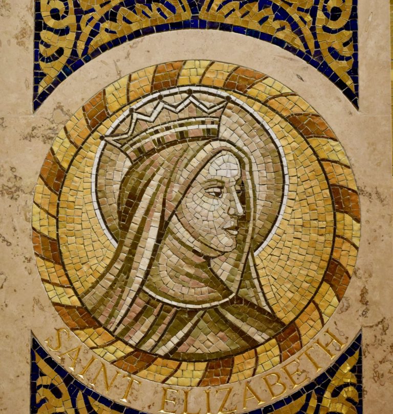Árpádházi Szent Erzsébet 1207-ben született a sárospataki királyi várban. Apja II. Endre magyar király, édesanyja a német andenchs-merániai családból származott Gertrúd királyné. Gyermekkorában testi és szellemi bontakozásával együtt növekszik benne Isten szeretete, még játékait is imádsággal igyekezett megszentelni. Korán szokásává válnak az irgalmas szeretet cselekedetei; főként az alamizsnálkodás. Négy éves korában Wartburgba kerül, hogy leendő vőlegényével, Hermannal együtt nevelkedjék. A hirtelen környezetváltozás és a véget nem érő zajos ünnepségek miatt nehezen találja meg a helyét Erzsébet. A durvaságtól és a közönségességtől, mely együtt járt az örökös lakmározásokkal, visszaborzadt. Édesanyja meggyilkolásának híre (1213) méginkább a teljes magábavonulásra késztette. Az imádságba menekül. A vár ura és úrnője őszintén szerették leendő menyüket, de az udvar nem tűrte Erzsébet mély vallásosságát. 1216-ban hirtelen meghalt Hermann. A várúr másodszülött fiának, Lajosnak (Ludovicus Lantgravius) szánta Erzsébetet. A vár ura egy év múlva meghalt. Az udvar mindent megtett, hogy Erzsébettől elhidegítsék Lajost. Lajos határozottan elutasított minden intrikát, és szeretett jegyesével 1221-ben házasságra lépett. Boldog házasságukban egymást buzdították Isten szeretetére. A középkori társadalom megoldatlan gazdasági szervezetlensége, fogyatékos higiéniája és sűrűn ismétlődő járványai sok alkalmat adtak az irgalmas szeretet gyakorlására. Az elhagyott és nyomorék gyermekeknek menhelyet létesít. 1227-ben férje, mielőtt a Szentföldre indult volna, meghalt.